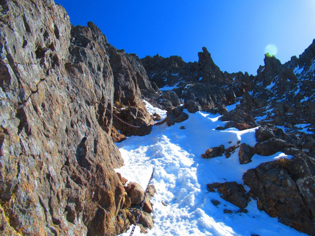 前日の新雪が岩場を白くデコレーションしており、この時期ならではのコントラストが美しい、最高のコンディションでの登頂となりました。